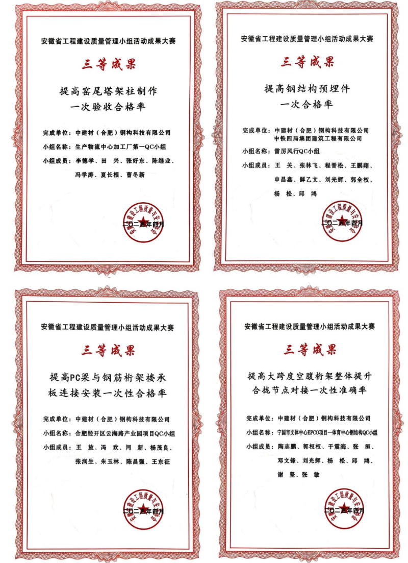 中建材鋼構(gòu)公司榮獲安徽省工程建設(shè)質(zhì)量管理QC大賽十項(xiàng)成果
